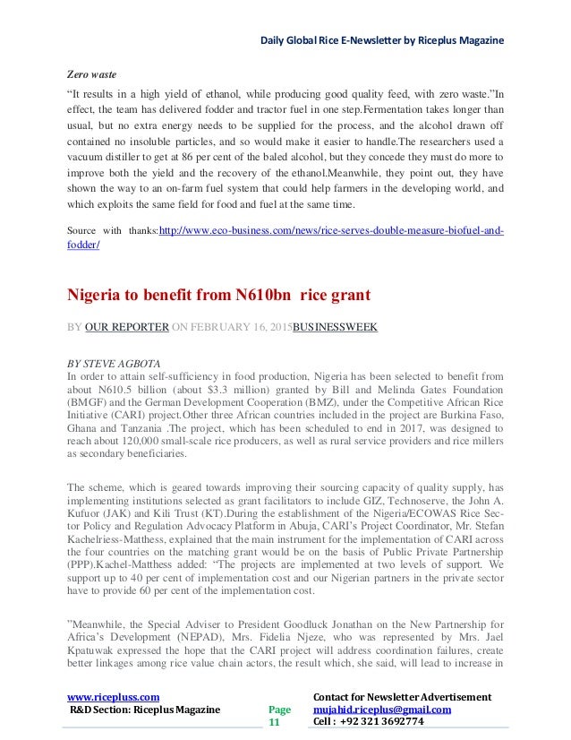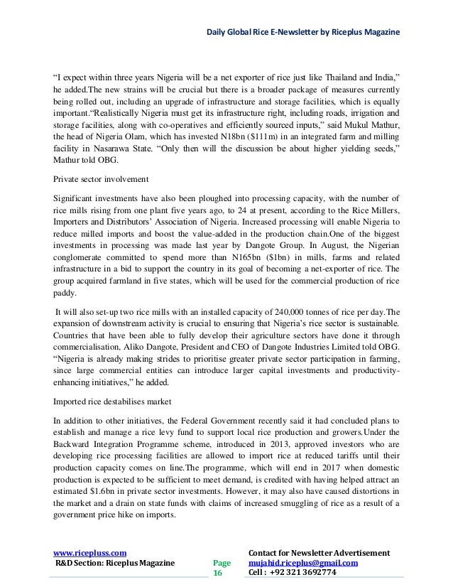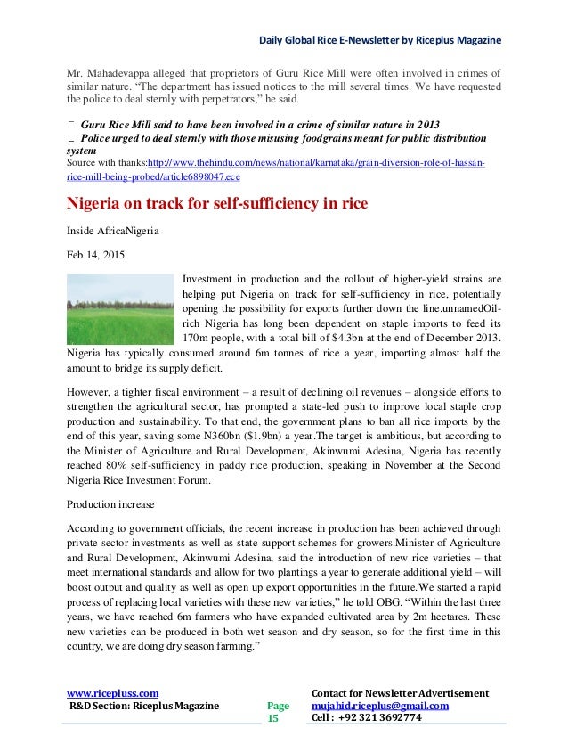 happened and the rice was sold locally. It stated that the rice was sold to two